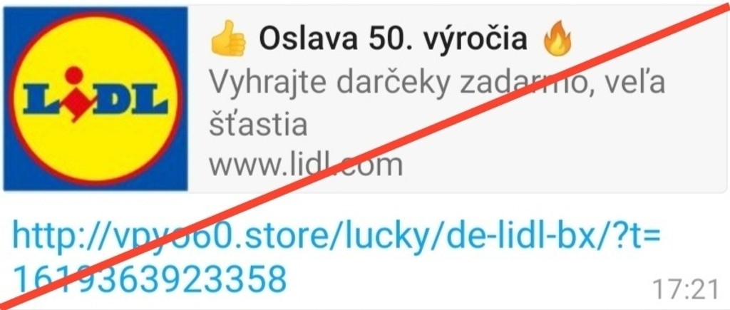 „Po tom, čo na tento odkaz kliknete, tak ste presmerovaný na externú stránku. Stránka ale nepatrí spoločnosti Lidl, ale neznámemu útočníkovi. Následne ste vyzvaný, aby ste sa zapojili do súťaže, ktorá má vyvolať pocit, že je pod záštitou spoločnosti Lidl," konštatuje polícia na facebookej stránke Hoaxy a podvody - Polícia SR.