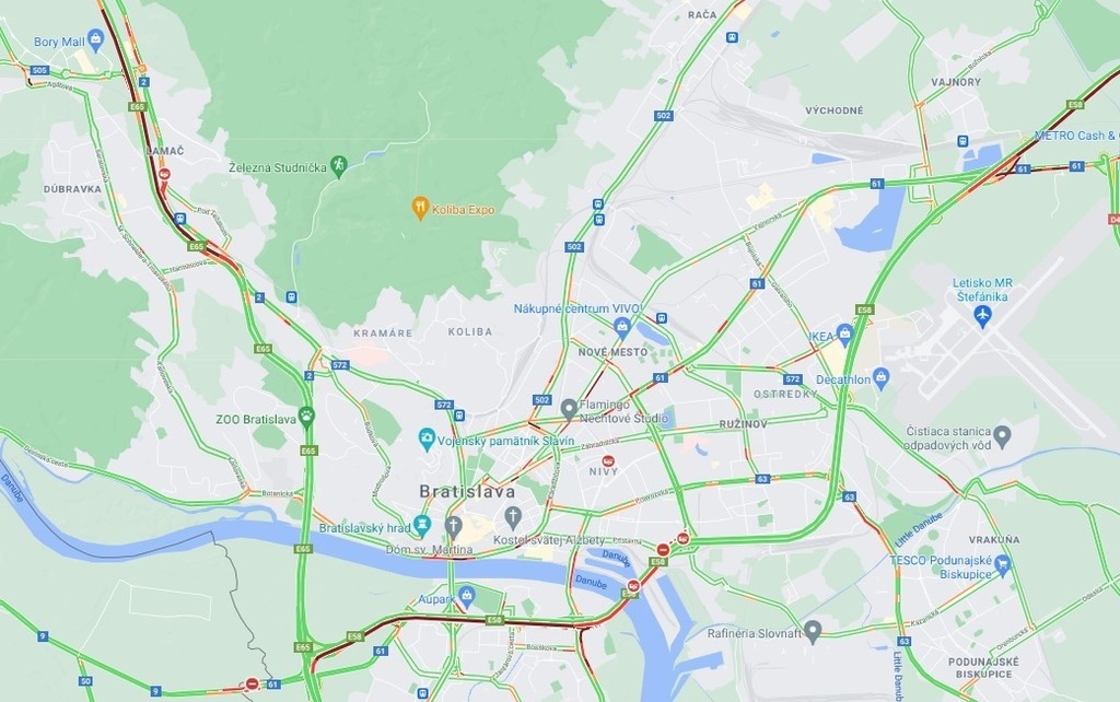 Pre dopravnú nehodu na bratislavskom Prístavnom moste sa tvoria na Einsteinovej ulici kolóny až po Most Lanfranconi. Upozorňuje na to Zelená vlna RTVS.