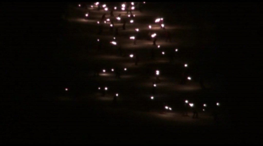 Najprv sa na svahu ukázala len malá gulička svetielok. Neskôr sa objavil svetielkujúci had zo 128 ľudí s fakľami v rukách.