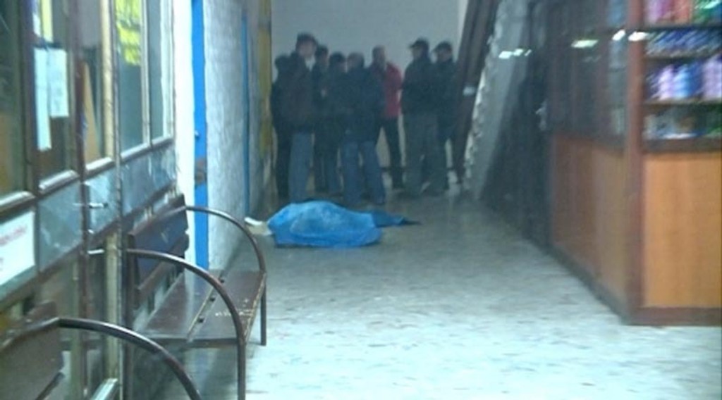47-ročného muža našli večer nehybne kľačať pri stoličke na toaletách v malej miestnosti kde sa vyberajú poplatky. Z hrude mu tiekla krv.