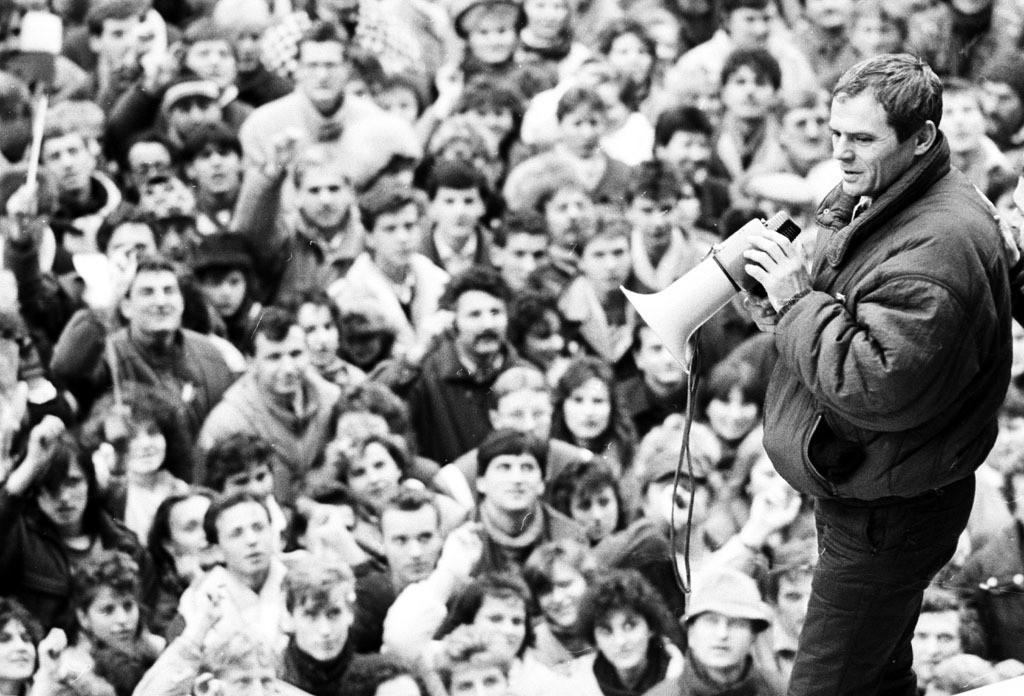 Pohľad na manifestáciu desaťtisícov Bratislavčanov 24. novembra 1989 na námestí SNP.