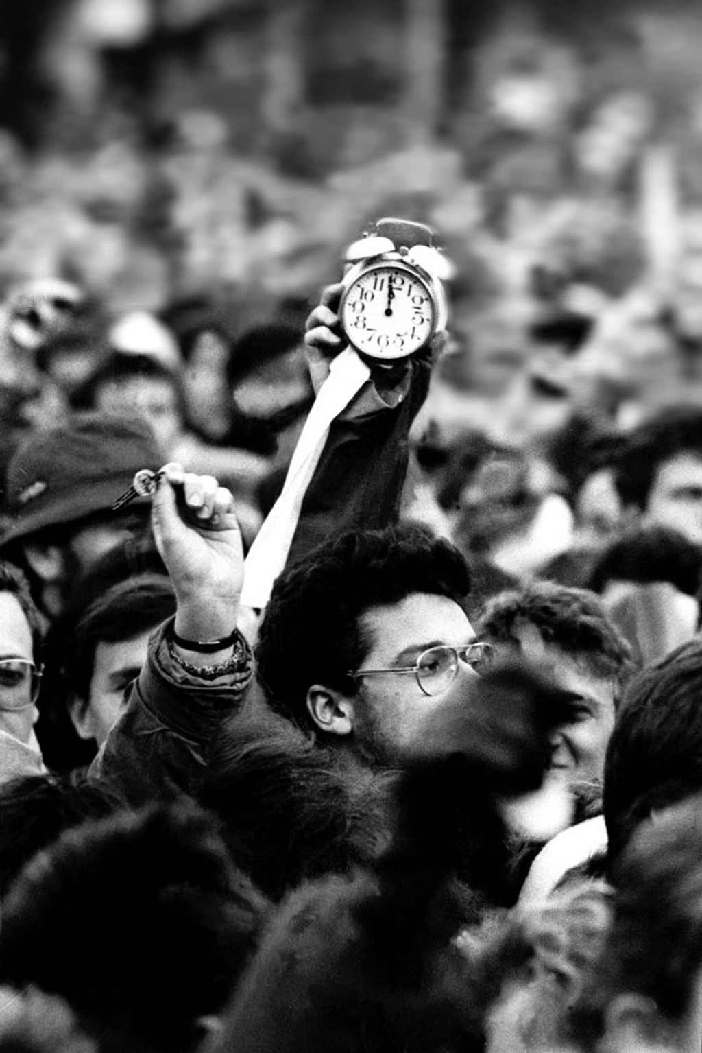 Symbolický záber, ktorý vyjadruje mienku zhromaždenia desaťtisícov manifestujúcich na bratislavskom Námestí SNP 25. novembra 1989.