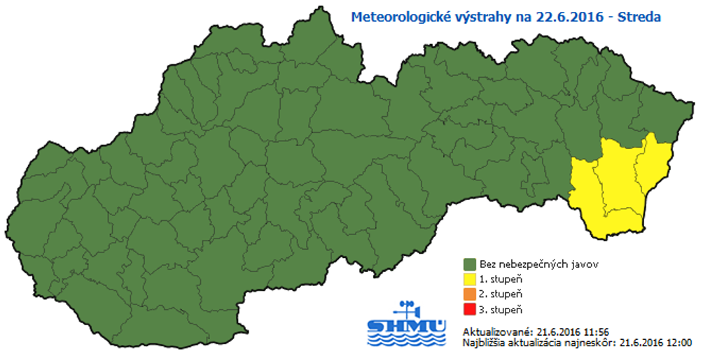 V okresoch Trebišov, Michalovce a Sobrance budú v stredu (22.6.) vysoké teploty. Slovenský hydrometeorologický ústav (SHMÚ) preto vydal výstrahu prvého stupňa. Meteorológovia tu očakávajú maximálnu teplotu vzduchu 33 stupňov Celzia.