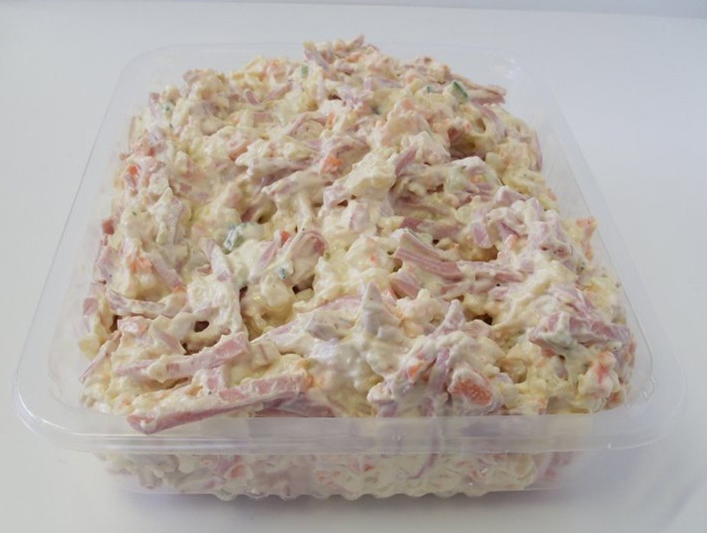 V poradí tretím je rybací šalát, ktorý si kúpilo 40 percent domácností a to približne päťkrát za rok. Pri jednom nákupe v priemere 25 dkg tohto šalátu.