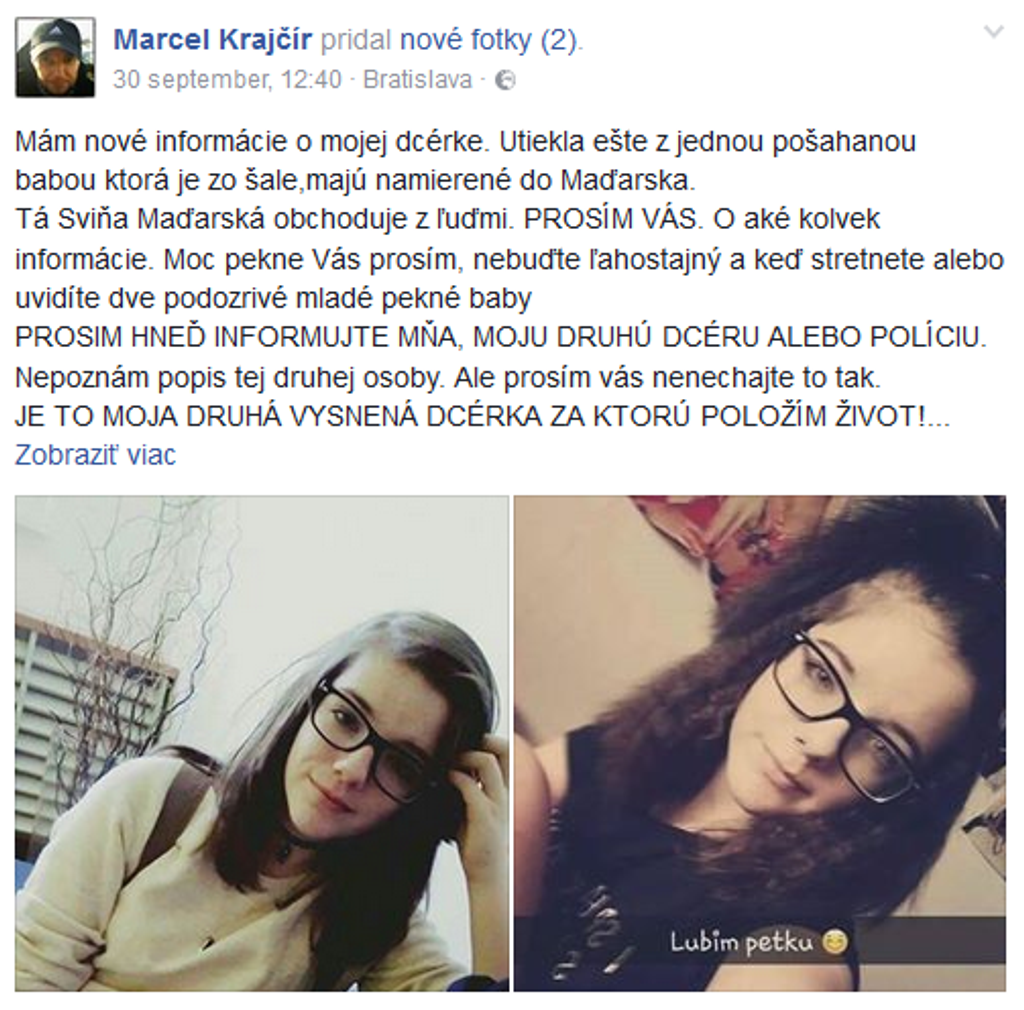 O pomoc na sociálnej sieti žiadal aj jeden z otcov. Ten okrem iného priniesol aj šokujúce informácie. Podľa jeho slov Zuzanu na útek nahovorila Skarlet, ktorá má vraj obchodovať s ľuďmi.