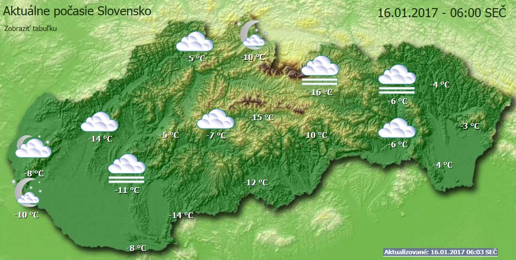 Prehľad ranných teplôt na Slovensku: