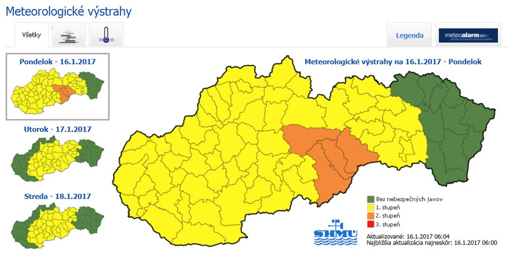 Výstraha 2. stupňa platí pre okresy Banskobystrického a Košického kraja: