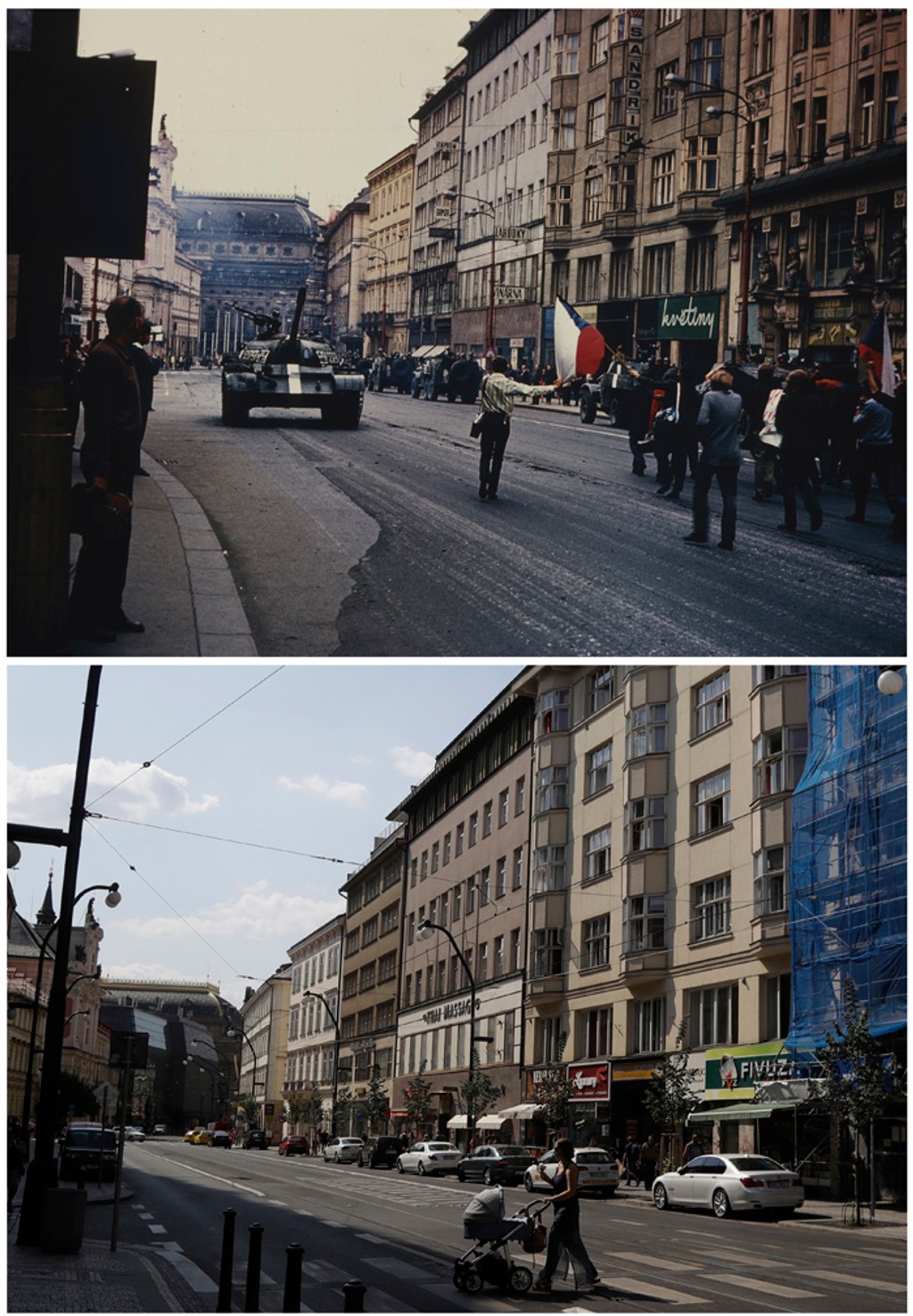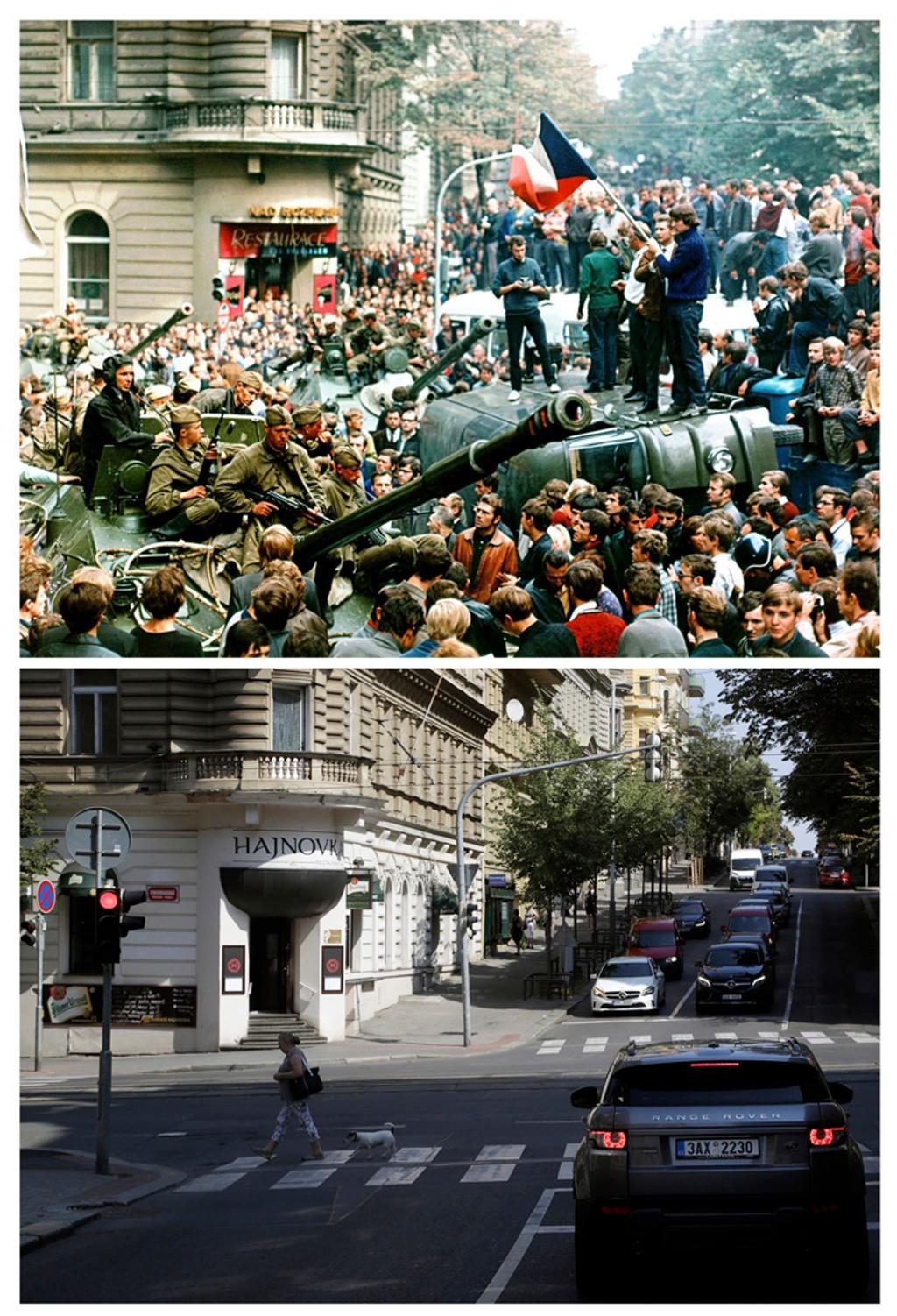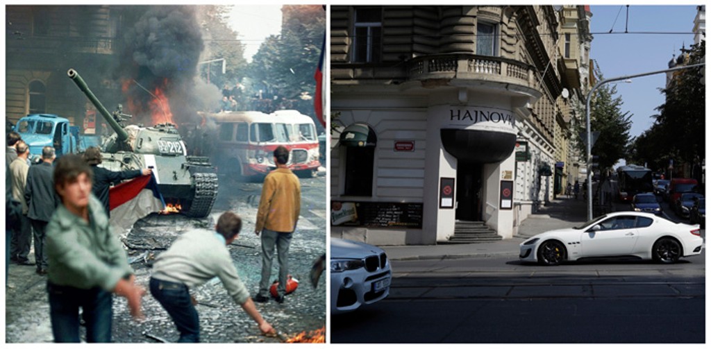 Prinášame vám niekoľko snímok, ktoré vydala pri tejto príležitosti tlačová agentúra Associated Press. Fotografie v auguste 1968 urobil fotograf ČTK Libor Hajský. Na miesta sa pred pár dňami vrátil súčasný Petr David Josek, ktorý odfotil ako vyzerajú tieto miesta dnes.