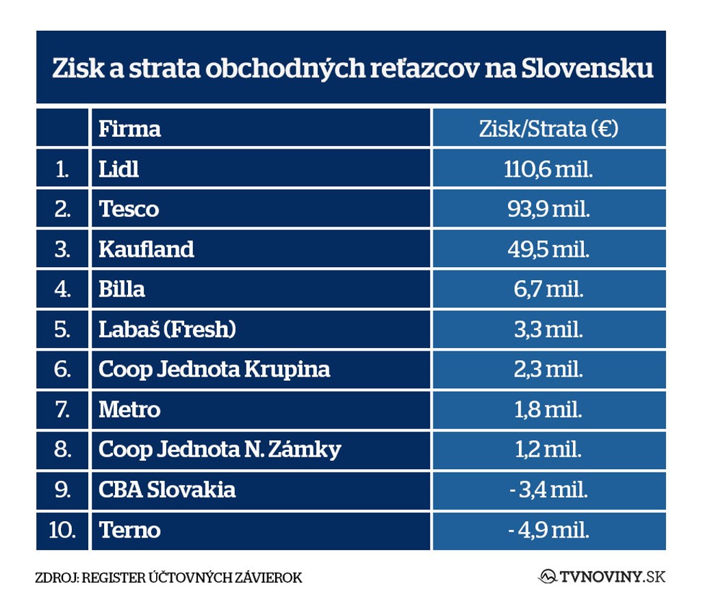 Kým v oblasti tržieb sa Lidl doťahuje na lídra, tak v zisku ho už v minulom roku predbehol. Nemecký diskont dokázal vlani zarobiť vyše 110 miliónov eur.