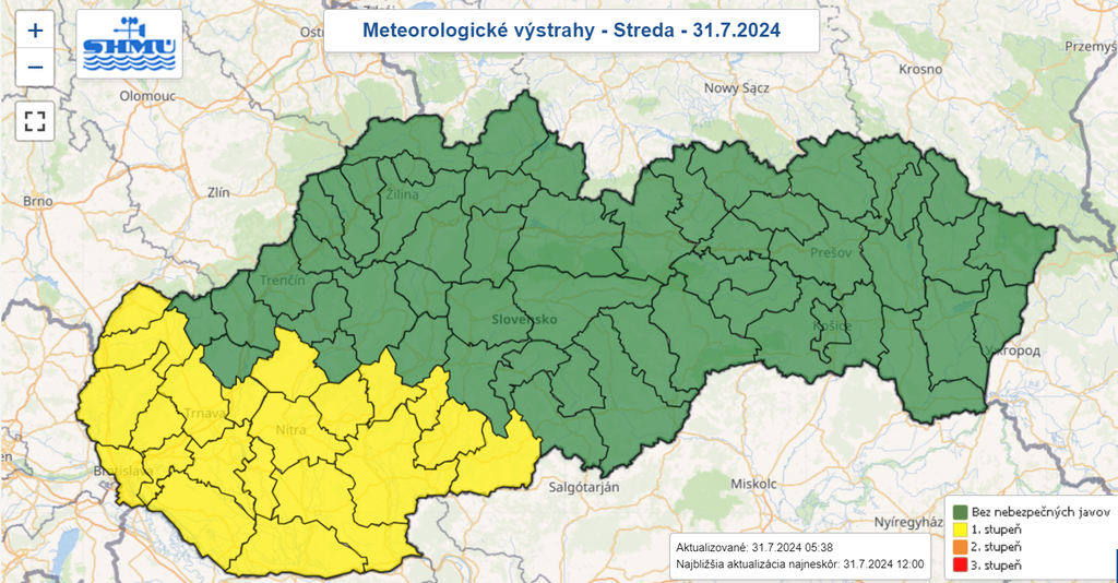 Upozorňuje na to Slovenský hydrometeorologický ústav (SHMÚ), ktorý vydal výstrahy prvého stupňa.