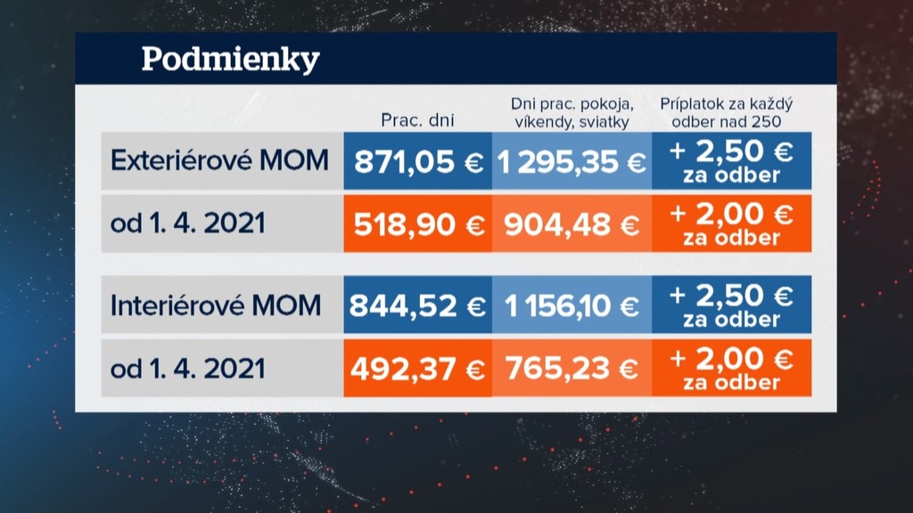 Ministerstvo chcelo týmto krokom zabrániť plytvaniu verejných financií. Rovnako tak znížilo nároky na mobilné odberové miesta čo sa týka počtu ochranných pomôcok a môžu mať o jedného pracovníka menej. „My si uvedomujeme, že tá suma sa znížili relatívne výrazne. Faktom ale je, že to zníženie vychádzalo z reálnych kontrol analýzy nákladov. A zároveň aj z faktu, že sme upravili podmienky, ktoré sú teraz menej prísne a teda majú MOM nižšie náklady na prevádzku," vysvetlila Zuzana Eliášová, hovorkyňa ministerstva zdravotníctva.