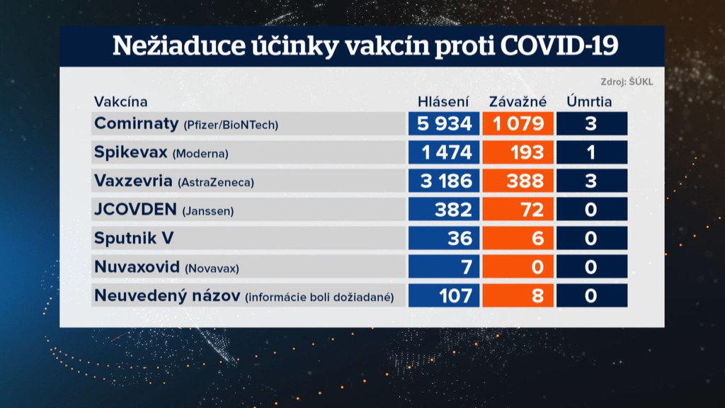 Štátny ústav pre kontrolu liečiv (ŠÚKL) celkovo eviduje viac ako 11-tisíc hlásení na nežiaduce účinky, z toho bolo takmer 1800 závažných.