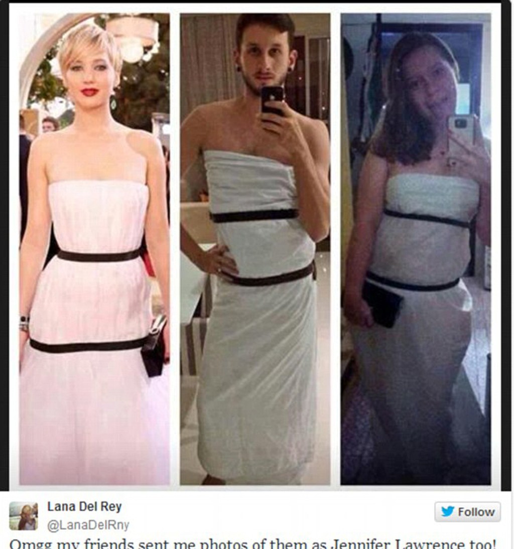 A tak sa hviezda filmov Hry o život stala terčom vtipov a posmechu. Najmä na sociálnej sieti sa objavilo niekoľko fotografií. Obyčajní ľudia a dokonca aj jeden z kolegov zrejme chceli herečke ukázať, že si mohla dať s výberom róby väčšiu námahu.