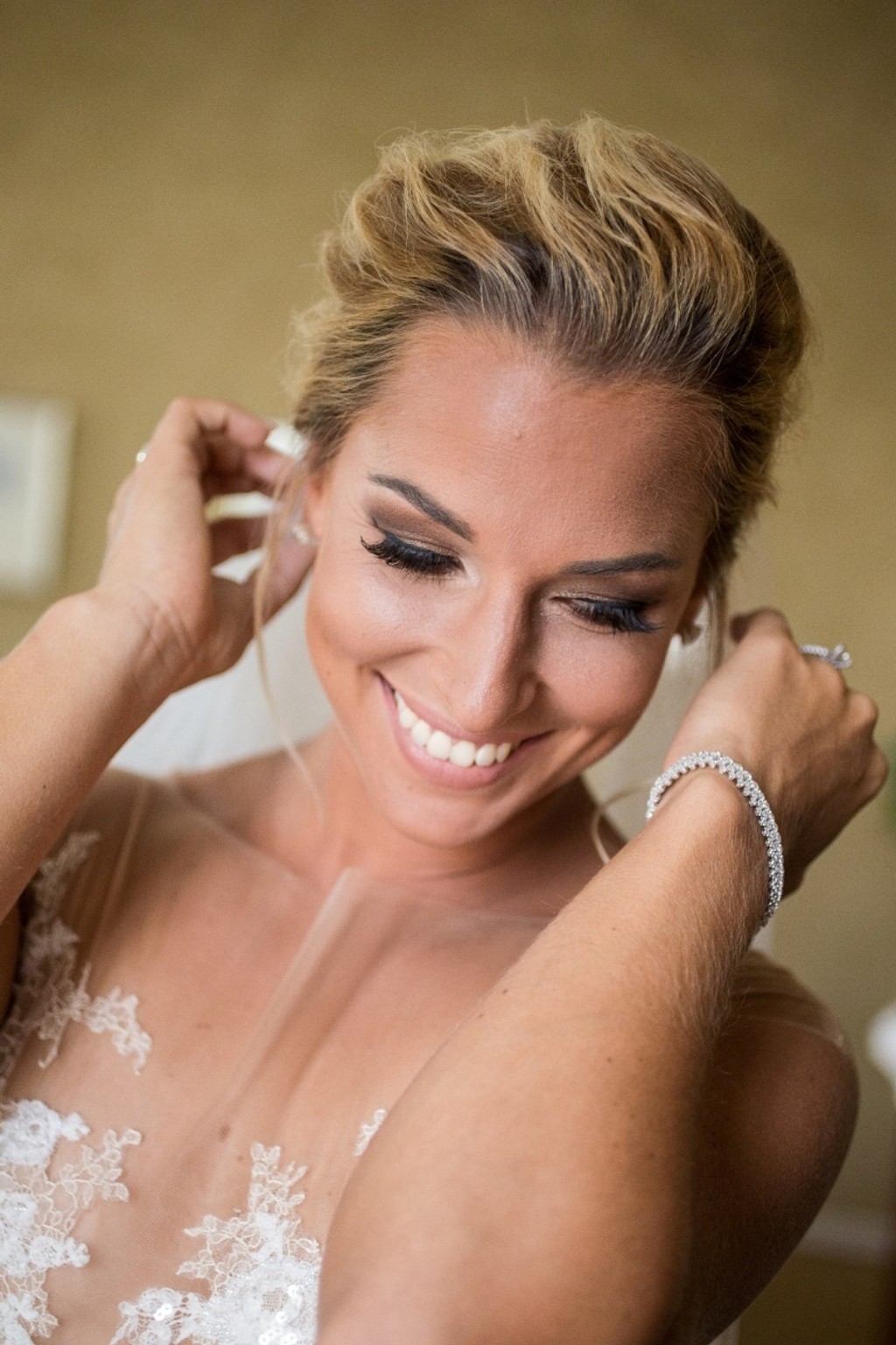 Svadobnú róbu podčiarkli unikátne šperky. Nevestu zdobili náušnice z bieleho zlata osadené 3-karátovými diamantmi a elegantný náramok posiaty 225 diamantmi. Pomyselnou čerešničkou bol exkluzívny diamantový zásnubný prsteň, vykladaný 88 diamantami a obrúčky. Tie na mieru pre novomanželov vyrobili v klenotníckom ateliéris.