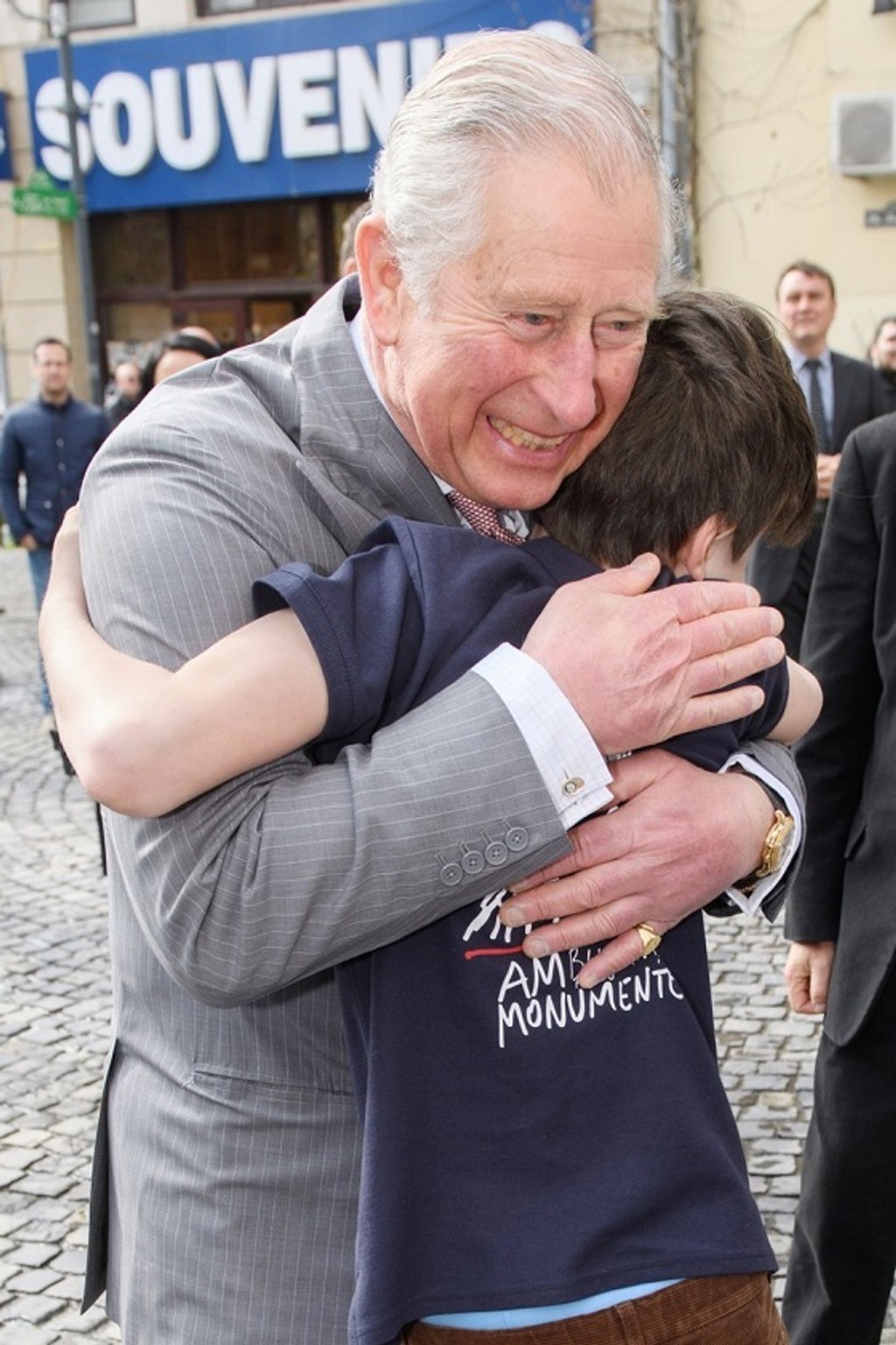 Syn kráľovnej Alžbety II. ukázal, že je len obyčajný človek a srdce má na pravom mieste. Počas dnešnej prechádzky Bukurešťou neváhal opätovať objatie žiakovi miestnej školy.