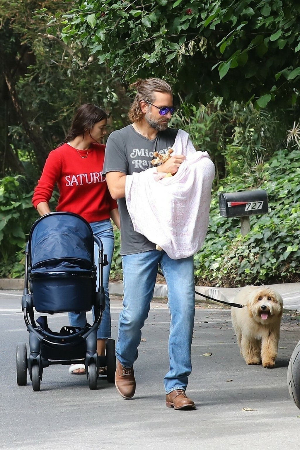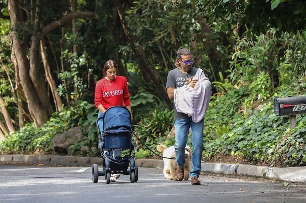 Ruská modelka Irina Shayk (31) a herec Bradley Cooper (42) sú šťastnými rodičmi ich prvého dieťaťa, dcérky Ley De Seine, ktorá nesie obe hviezdne priezviská. S dvojmesačným bábätkom sa v slnečnom Los Angeles, kde žijú, vybrali na prechádzku bok po boku.
