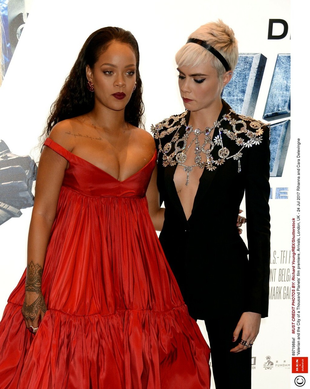 Rihanna mala na premiére filmu, v ktorom si strihla krátku scénu, oblečenú veľkolepú červenú róbu od módneho návrhára Giambattistu Valliho. Aj keď v snímke jej veľký priestor na zažiarenie nedali, na premiérach sa jej to darí dokonale. Jej bujný dekolt zaujal aj filmovú kolegyňu, modelku Caru Delevingne.