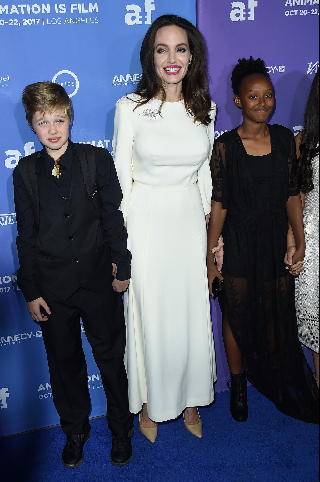 Matka šiestich detí vyzerala do tváre krásne a aj šaty boli veľmi pekné. Pôsobila v nich ako pravá dáma. Spoločnosť jej robili dcéry Shiloh (11) a Zahara (12).
