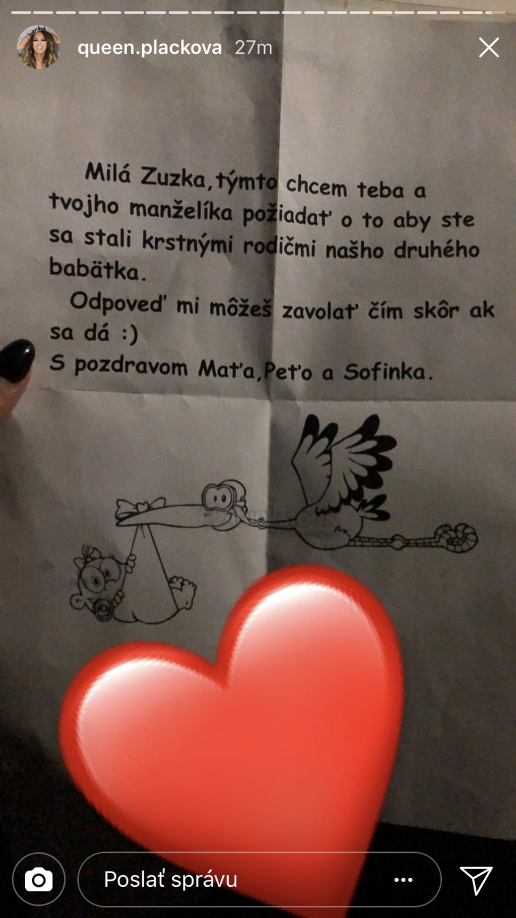 Tentoraz ale príjemne prekvapila, keď sa podelila o jednu z najkrajších správ, ktoré môže žena dostať. Najskôr zverejnila instastory, na ktorej od dojatia plakala a neskôr ukázala aj dôvod v podobe listu.