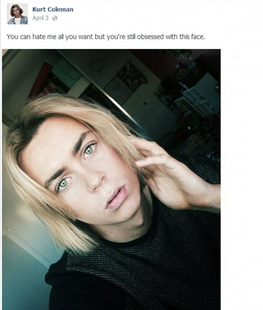 Kurt Coleman (17) vyhlasuje o sebe, že je najznámejší tínedžer v Austrálii. Na Facebooku má okolo 17-tisíc nasledovníkov. Jeho vzorom je Paris Hilton. „Paris je mojou inšpiráciou, je rovnaká ako ja, preto ju milujem. Ľudia na mňa žiarlia, pretože mám rád sám seba," povedal Kurt.