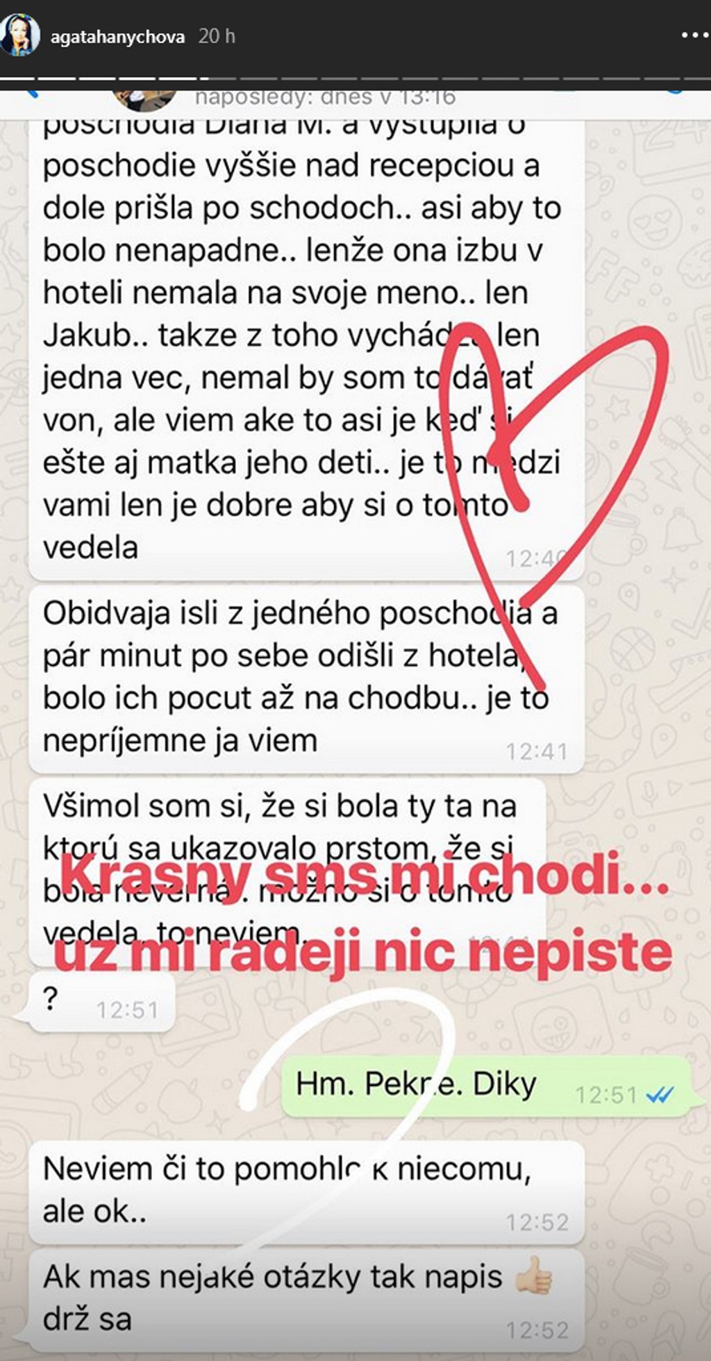 Agáta zverejnila tieto správy a napísala k nim, že nech jej ľudia nič také už radšej neposielajú. Viaceré české médiá píšu o tom, že sa schyľuje k rozvodu, no dvojica sa k tejto téme zatiaľ nevyjadruje.