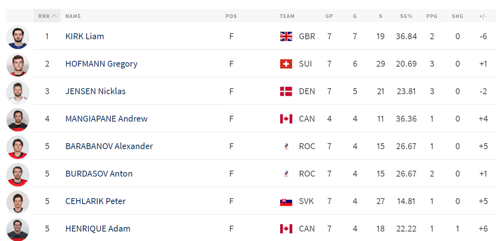 Už len tento príbeh Veľkej Británie je sám o sebe fascinujúci a korunku krásy mu teraz nasadil spomenutý Liam Kirk. Ten totiž z 13 gólov svojho tímu strelil až sedem a stal sa kráľom strelcom skupinovej fázy. Kirk má pritom len 21 rokov a ide o jediného draftovaného hráča NHL v reprezentačnom výbere. Z historického hľadiska sa to doposiaľ podarilo len dvom britským hráčom pred ním.