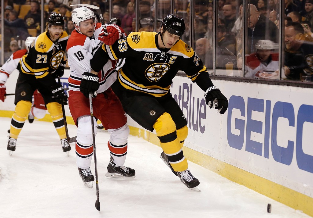 Slovenský hokejový obranca Zdeno Chára v sobotu pomohol Bostonu jedným gólom k víťazstvu v zámorskej NHL na domácom ľade nad Carlinou 3:2 po predĺžení. Tridsaťšesťročný obor sa presadil v 15. min v presilovej hre, keď odpovedal na presný zásah ďalšieho slovenského hráča Andreja Sekeru. Ten otvoril skóre v 6. min tiež v početnej výhode. Víťazný presný zásah Bruins dosiahol v druhej minúte predĺženia český útočník David Krejčí. Chára odohral 27:05 min, Sekera 24:46. Obaja mali po dva strelecké pokusy.