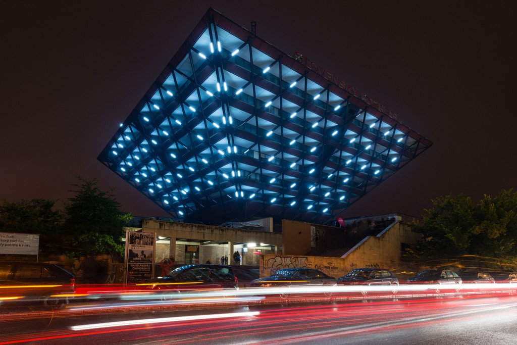 Neobišiel ani budovu Slovenského rozhlasu na Mýtnej ulici, „ktorá nenechá chladným nikoho, kto okolo nej prvýkrát prejde“. Bez ďalšieho komentára však pripomína, že obrátená pyramída sa ocitla na zozname najškaredších stavieb sveta, ktorý v roku 2018 zostavil portál The Telegraph.