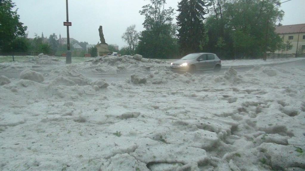 Búrky najviac zasiahli Berounsko. Tam museli pomáhať bagre a pluhy. Krúpy boli obrovské, spomalili aj prevádzku na diaľnici.