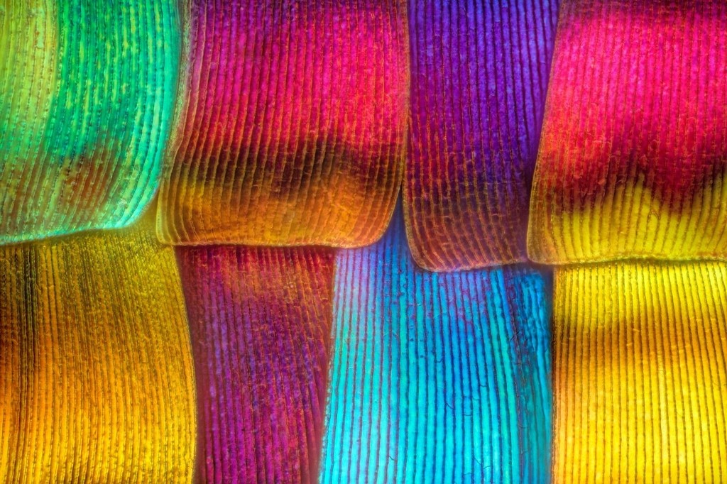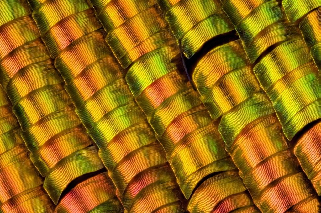 Motýľ Chrysiridia rhipheus má na svojich krídlach krásne žiarivé farby, preto sa ich rozhodli priblížiť cez mikroskop.