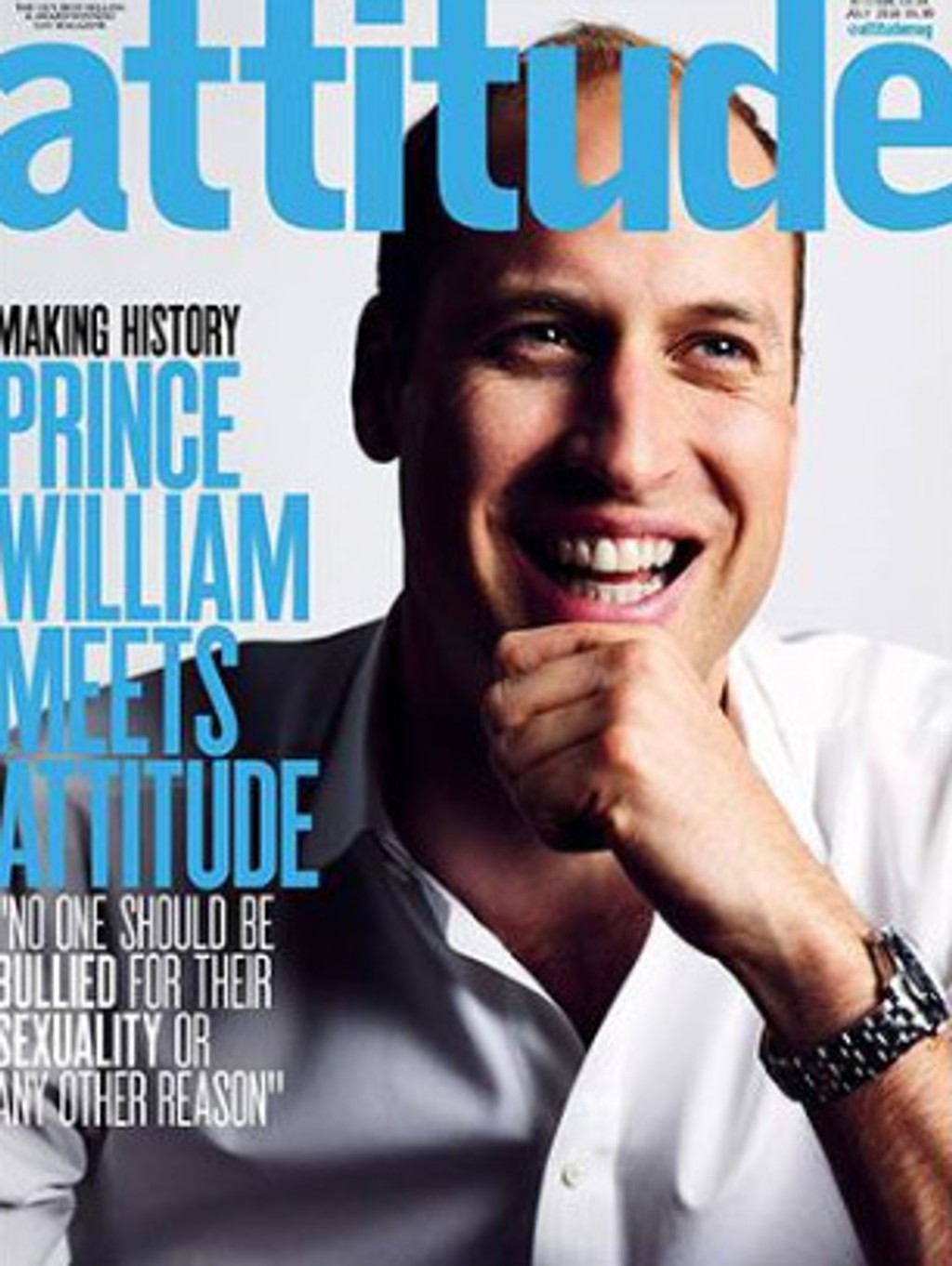 William sa tak stal vôbec prvým členom britskej kráľovskej rodiny, ktorý sa objavil na titulnej stránke periodika pre homosexuálov. Vojvoda z Cambridge v časopise Attitude apeloval na mladých ľudí, ktorí sú kvôli svojej sexualite vystavení šikanovaniu, aby sa nebáli vyhľadať pomoc. "Nikto by nemal byť šikanovaný pre svoju sexualitu ani zo žiadneho iného dôvodu a nikto by sa nemal zmieriť s takýmto druhom nenávisti," povedal William, druhý v línii následníctva na britský trón.