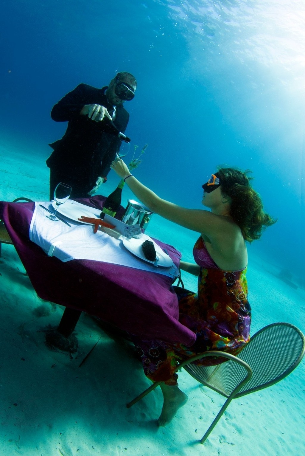 Aj vy určite radi trávite voľné chvíle s vašou polovičkou pri romantickej večeri. Pekne sa oblečiete, vyberiete si dobré jedlo a všetko zavŕšite kvalitným šampanským. Viete si však predstaviť, že by ste si takúto večeru vychutnávali na dne mora bez dýchacích prístrojov?
