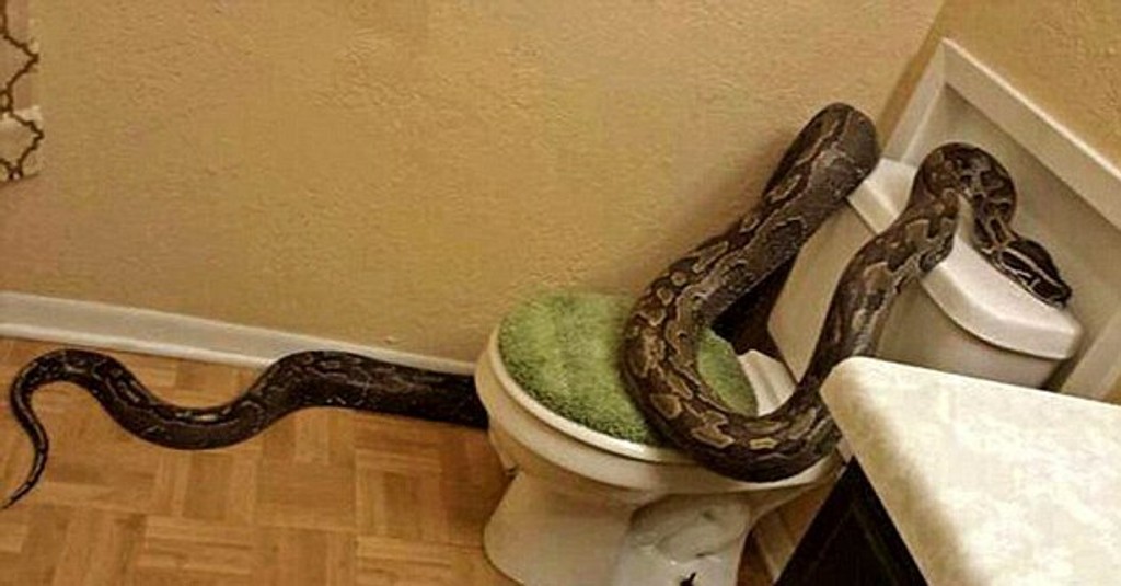 Veronica Rodriguezová (50) vošla do kúpeľne a na toalete si pokojne relaxoval obrovský pytón. Had sa tam zrejme dostal cez zadné dvere domu, ktoré boli otvorené. „Nevedela som, čo s ním mám robiť, pretože bol obrovský," povedala Rodriguezová.