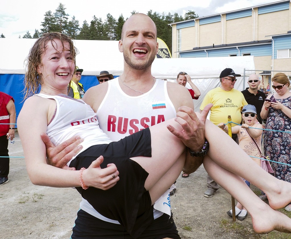 Kuriózne majstrovstvá sveta v nosení žien vyhral túto sobotu vo Fínsku pár z Ruska. Trať dlhú 253 metrov prebehol Dmitrij Sagal s partnerkou Anastasiou Loginovovou na pleciach za jednu minútu a dve sekundy.