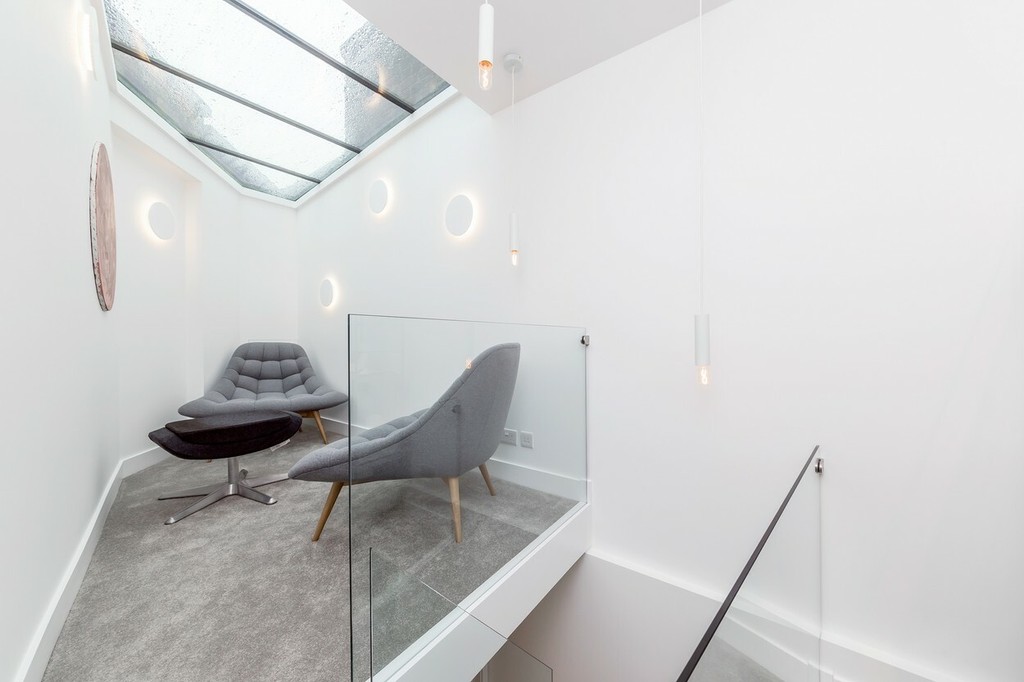 Úzka budova ponúka dve spálne, dve kúpeľne, dve prijímacie miestnosti a študovňu s presklenou strechou. Pozrite si fotky izieb. Viac fotiek nájdete TU.