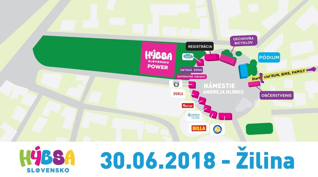 „Aj v Žiline si deti môžu zasúťažiť v behu, na bicykloch či kolobežkách, cez prekážky či v rodinnej štafete. Na každého čaká aj sprievodný program v podobe vyšetrenia očí, dopravného ihriska, kolesa šťastia, maľovanie na tvár," priblížila program koordinátorka Hýbsa Slovensko Miriam Lisá.