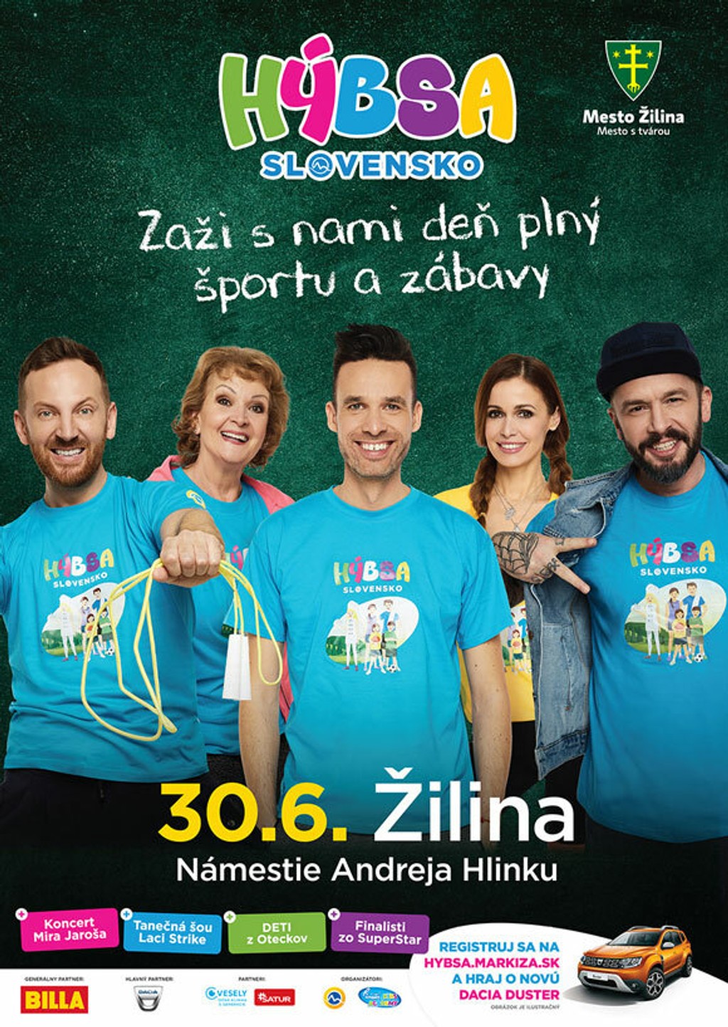 Čaká nás ďalší deň plný športu a zábavy. Televízia Markíza s projektom Hýbsa Slovensko tentokrát rozhýbe Žilinu. Nenechajte si ujsť posledný HÝBSADAY!